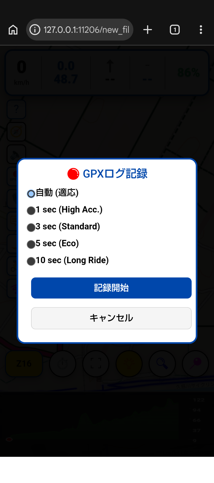 - 赤いボタン:GPXログ記録