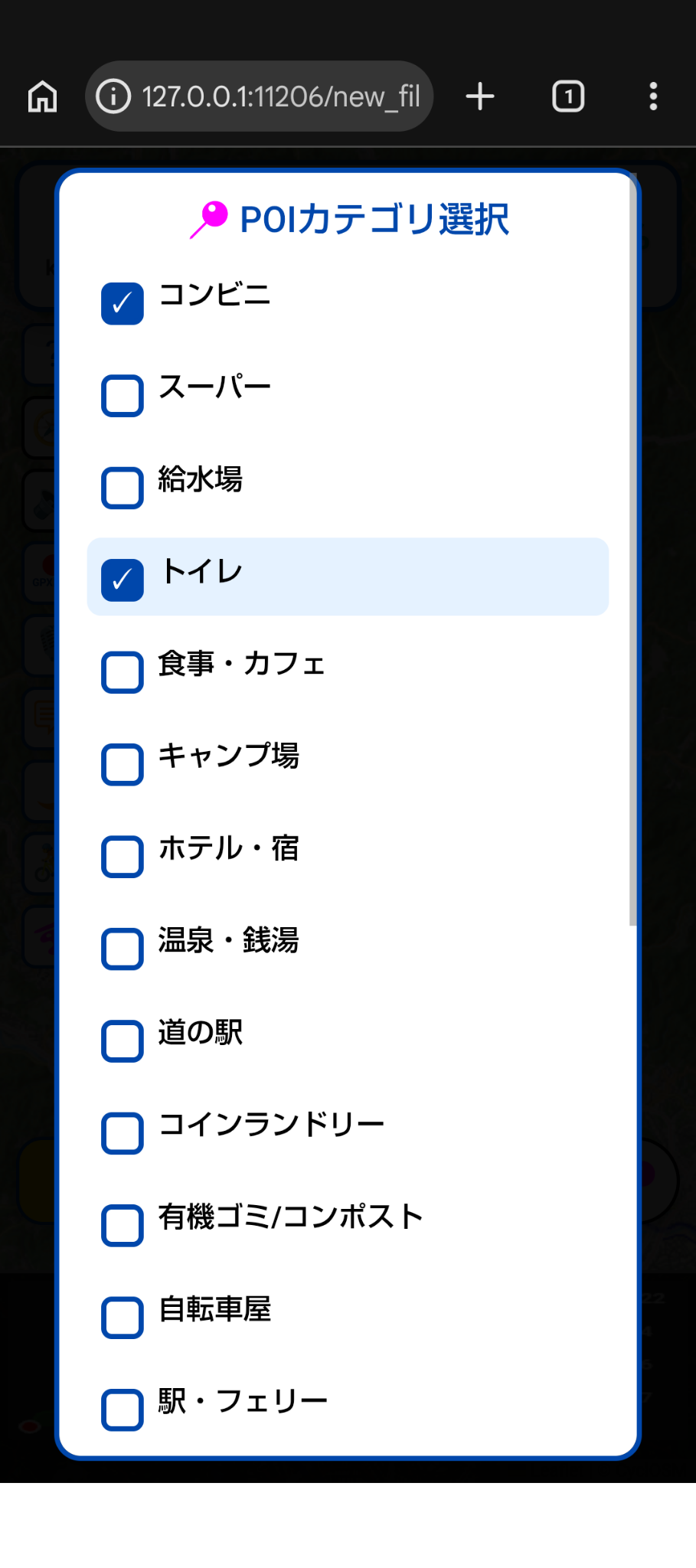 👉 POI(Points Of Interest)の選択画面。この段階でPOIを選択すると、選択したすべてのPOIがマップ上に表示されます。