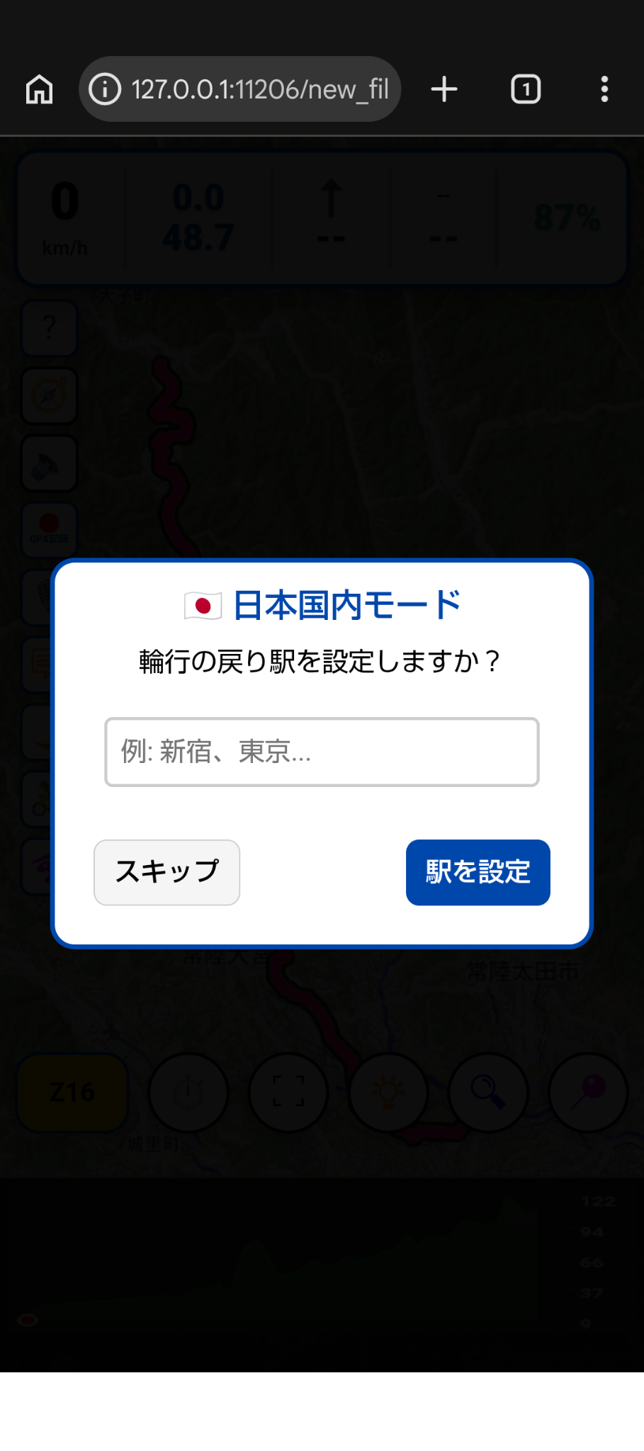 - 次のジオポタポイント(サイダーが事前にgpxファイルに入れ込んだ、次の面白い場所までの距離。下記の例には虎徹のルートだから空です。)