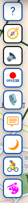 - 画鋲:GPSをONにする。自由にマップを調べたいときはOFFにしなくちゃ(ONのままだと現在位置がしつこく表示される)。