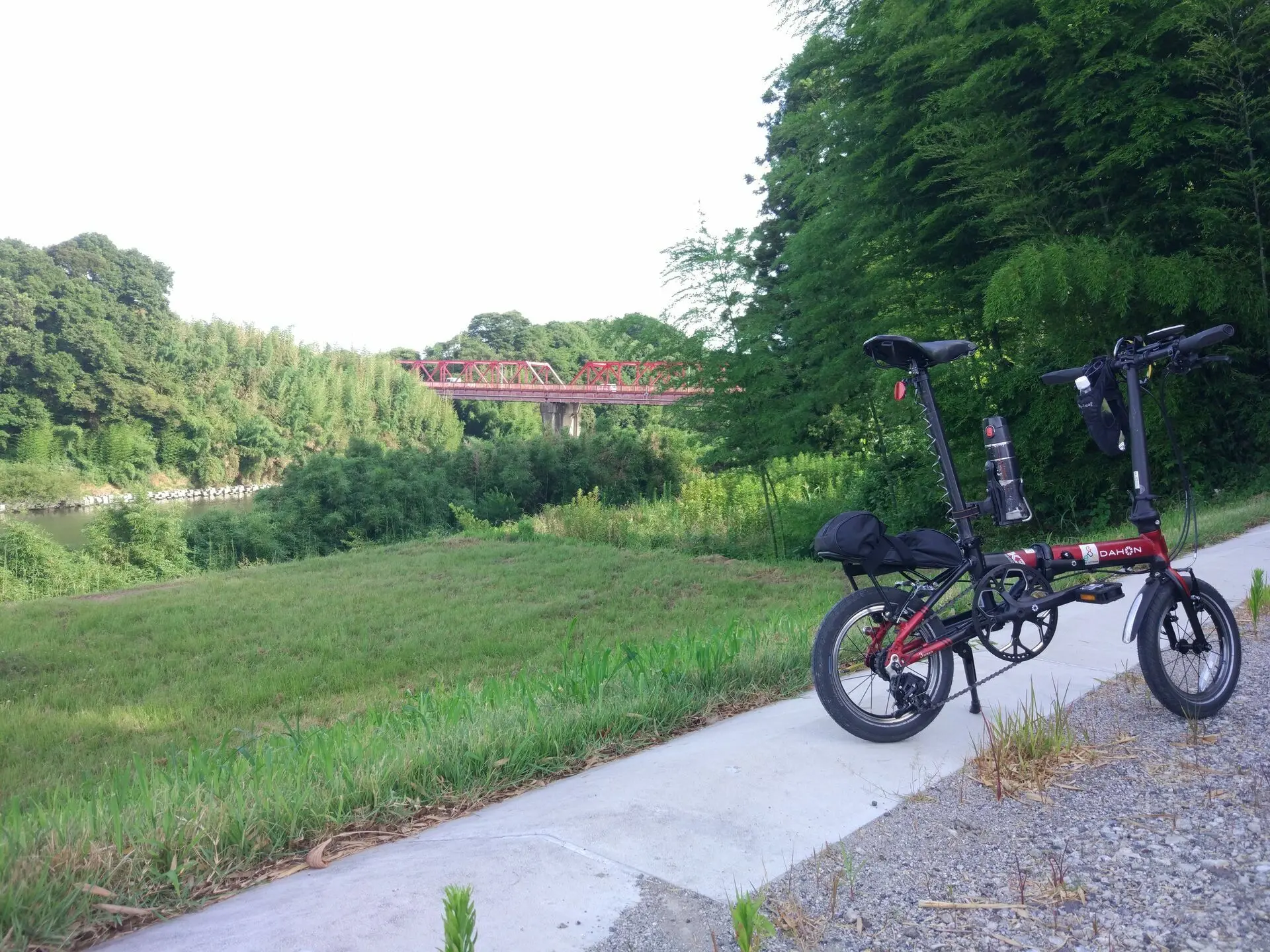 Absorbé dans les coulisses de Geo Pottering, j’ai pas mal négligé le blog ces derniers temps. Nous avons eu une très courte mousson cette année, ce qui s’est traduit par plus d’occasions d’aller rouler au sec, mais je l’ai fait seulement le matin ou en fin d’après-midi, dans les environs immédiats (il fait trop chaud pour aller rouler toute la journée dans la plaine du Kantō), et surtout dans le coin de la ville de Bandō (坂東市), sur la rive nord-est du fleuve Tone, et sur la rive sud-ouest du fleuve Edo, à la hauteur de la ville de Misato (三郷市) et du bourg de Matsubushi (松伏町), où j’ai identifié quelques endroits appropriés pour faire une pause, avec des toilettes publiques et/ou des machines distributrices à proximité.