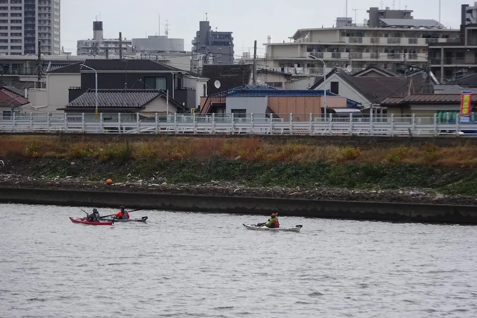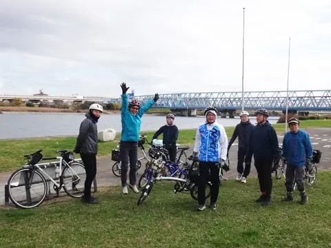 L’itinéraire se poursuit en direction de la rivière Furusumidagawa (古隅田川), mais avant d’y arriver le groupe croise Kotetchan, en train de recharger la batterie de son téléphone sur le pont Mito (水戸橋), qui surplombe la rivière Ayase (綾瀬川). Privé du GPS de son téléphone, le petit Québécois perdu dans Tokyo attendait le groupe sur son trajet. Bref, il avait la trouille et n’osait plus bouger pour aller à sa rencontre sans GPS… ^_^