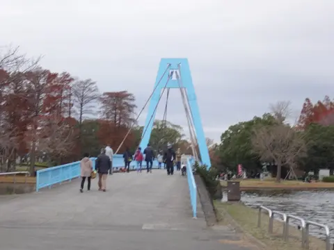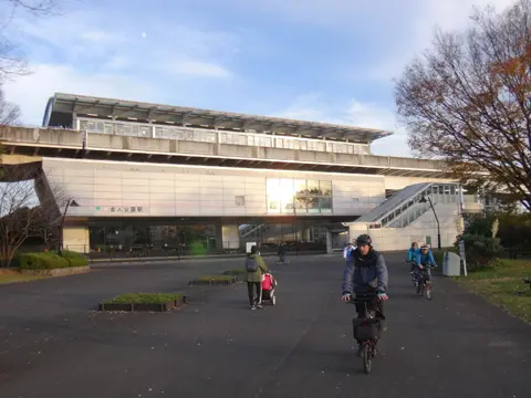 L’itinéraire de la journée passe ensuite devant la gare du parc Toneli (舎人公園駅) et par la section ouest du parc et ses selkova du Japon (ケヤキ) aux branches qui achèvent de se dénuder en cette fin de saison, puis nous prenons la direction de la piste cyclable du fleuve Arakawa.
