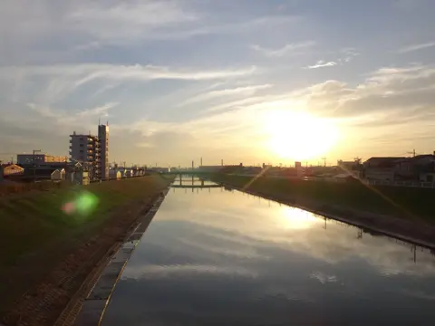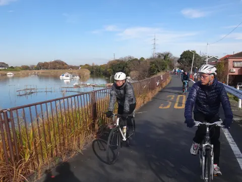 En quittant la rivière Furusumidagawa, les cyclistes empruntent l’ancienne route de Mito jusqu’au pont Nakagawa (中川橋), qui traverse la rivière du même nom à l’endroit même où il le faisait autrefois, à l’époque Edo. De là, le trajet emprunte le tracé de la rivière et la longe jusqu’au Grand pont Mizumoto (水元大橋).