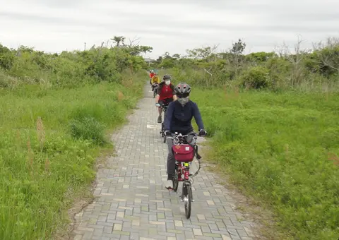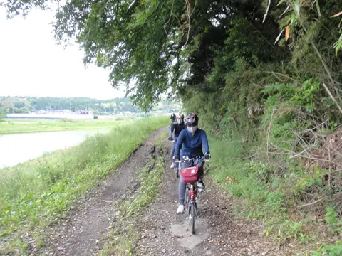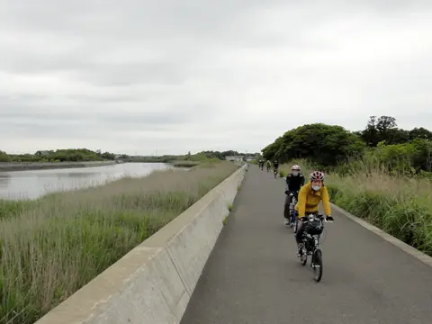 Ce trajet de Geo Pottering commence à la gare Keisei-Narita (京成成田駅) et se termine à la gare Ōami de JR (大網駅), en passant à travers des rizières de bas-fonds et le long de l’Océan Pacifique. Le midi, les cyclistes dégustent des palourdes communes d’Orient (ハマグリ) et autres fruits de mer dans un restaurant de la péninsule.