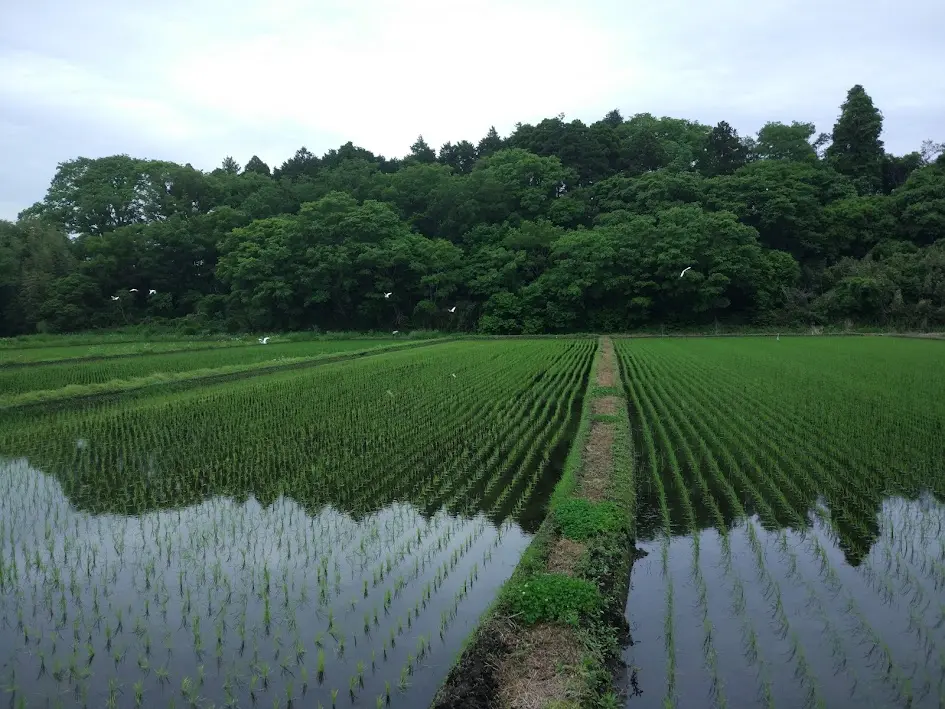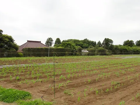 Nous voici dans la plaine de Kujūkuri. Le paysage rizicole et les collines laissent place à de vastes champs, où l’on retrouve des rizières irriguées, mais aussi des champs, ici et là, dont ce champ de maïs.