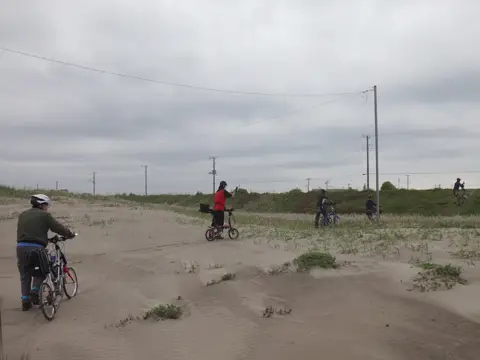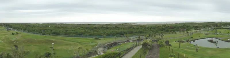 Le ventre plein, les cyclistes se rendent au belvédère du parc Hasunuma Kaihin (蓮沼海浜公園) pour contempler… le parc, puis repartent en direction de l’océan.
