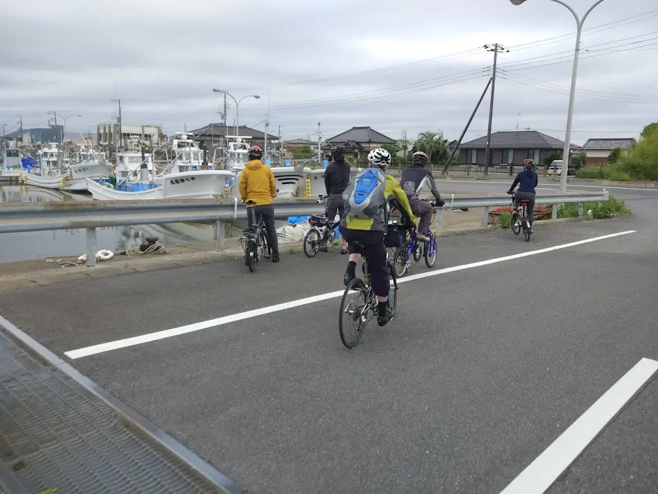 … en passant par la rivière Sakudagawa (作田川), le bizarre de pont Nakayoshi (なかよし橋) et le port de pêche Katakai (片貝港).