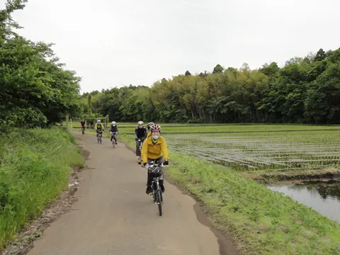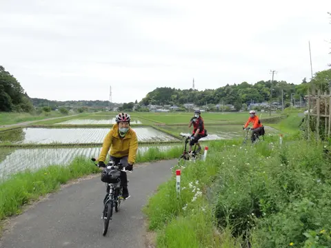 Après avoir roulé dans les alpes japonaises du nord au tout début du mois de mai, les cyclistes de Geo Pottering récidivent dans les rizières de bas-fonds et le long de l’Océan Pacifique, pour y contempler les espaces verts des rizières repiquées et déguster les délicieux fruits de mer de la région de Bōsō, préfecture de Chiba.