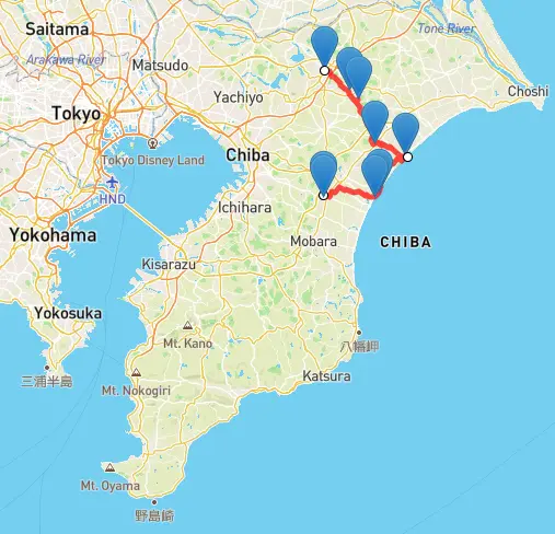 Nous sommes dans la ville de Narita, bien connue pour son aéroport international et le temple Narita-san Shinshōji. Située à juste un peu plus d’une heure de Tokyo par train, Narita est un excellent point de départ pour des balades à vélo.