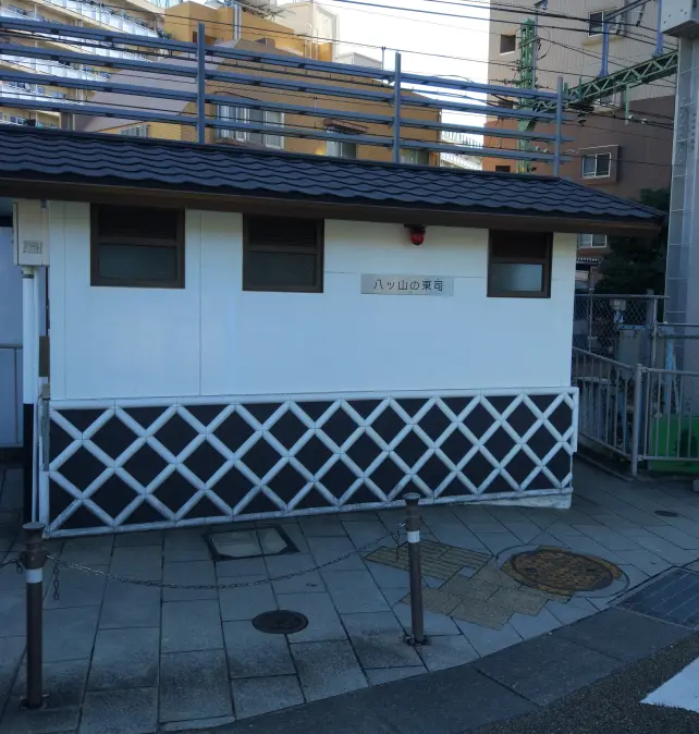 Comme toujours, j’ai pris la mauvaise sortie et ai eu du mal à trouver le point de départ du parcours (la sortie Ouest de la gare est préférable pour s’y rendre, m’ont dit les trois autres cyclistes après coup). Juste avant de nous engager dans Shinagawa-shuku par l’ancienne route du Tōkaidō, Reina s’est étonnée à la vue d’une petite affiche qui indiquait les toilettes : 八ツ山の東司 (Yatsuyama no tōsu). De retour à la maison, j’ai consulté le dictionnaire, pour apprendre que ce 東司 désigne les toilettes dans les temples zen (禅寺).