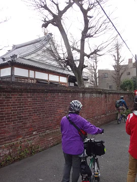La balade se poursuit ensuite vers le sud, en longeant d’abord le mur de briques du temple Jōtokuji (正徳寺).