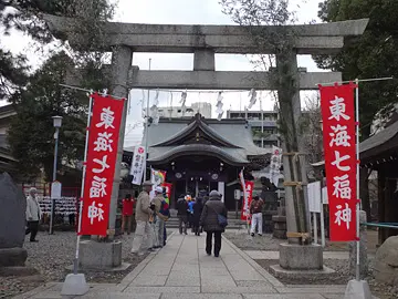 Tout juste après avoir traversé le pont, nous entrons au sanctuaire Tensosuwa (天祖諏訪神社). Une autre des sept divinités du bonheur nous y attend, le crâne bien lisse. Il s’agit de Fukurokuju, divinité de la richesse, de la longévité, de la virilité et de la sagesse… dit la version française de Wikipédia, tandis que la version japonaise ne mentionne que les trois premières, et parle plutôt, pour la virilité, du « bonheur de jouir d’une progéniture ». La nuance est de taille, messieurs, remballez votre virilité.