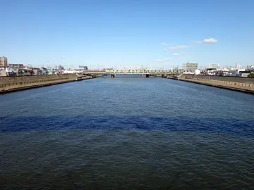 Cette rivière a pour origine le canal d’évacuation Nakagawa, long d’environ 8 km, aménagé en 1963 pour éviter les dégâts causés par les inondations dans la capitale. À l’aval, elle se jette dans l’ancien fleuve Edo (旧江戸川). Le tracé de la balade, lui, remonte un peu vers l’amont, puis bifurque vers l’est en longeant la limite de l’arrondissement de Katsushika (葛飾区), parfois à travers des ruelles.