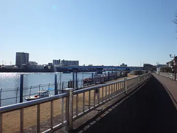 Au loin, les quatre vélos aperçoivent le pont Imai (今井橋). Ils le traversent et pénètrent, pour un court moment, à Ichikawa, préfecture de Chiba.