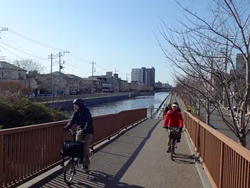Le parcours remonte vers le nord, le long du fleuve Arakawa et de la rivière Nakagawa, dont les eaux s’entrelacent pour pénétrer ensemble dans la baie de Tōkyō