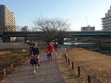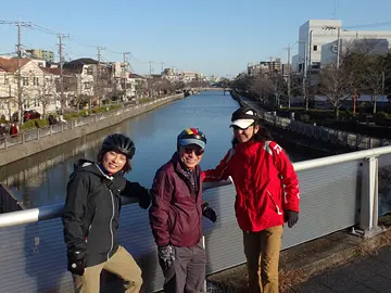De là, les vélos pliants se dirigent enfin vers les lieux de la deuxième estampe de cette balade, intitulée « Embouchure de la rivière Nakagawa » (中川口).