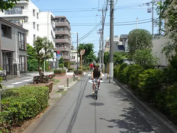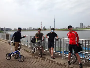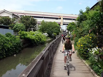 🚴 Le groupe passe ensuite sur la promenade de la rivière Furusumidagawa (古隅田川), petit cours d’eau d’environ 5 km et presque entièrement souterrain. Ce qui surprend quand on songe qu’il s’agissait autrefois, croit-on, du cours principal des actuels fleuves Tonegawa et Arakawa.