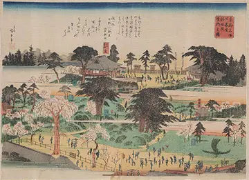 東都名所『日暮里修性院境内之図』 (Vues célèbres de la capitale de l’Est, « Enceinte du temple Shushōin de Nippori »)