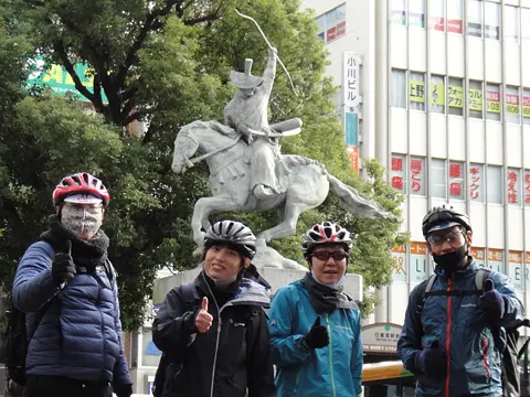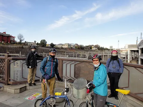 Devant cette gare, les membres prennent d’abord la photo de départ, avec, derrière eux, une statue du chef militaire Ōta Dōkan (太田道灌, 1432-1486), qui fut également l’architecte et bâtisseur du château d’Edo (l’actuel palais impérial), pendant la période Muromachi. Il a légué son nom au plateau Dōkan-yama (道灌山) dans le sud-ouest de l’arrondissement, plateau où il s’adonnait souvent à la fauconnerie ( 鷹狩 ).