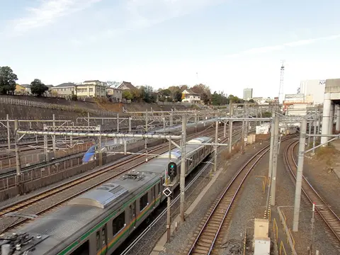 Le shinkansen (新幹線) croise un train de la ligne Utsunomiya (宇都宮線)
