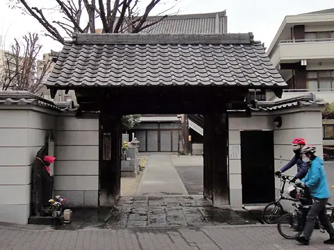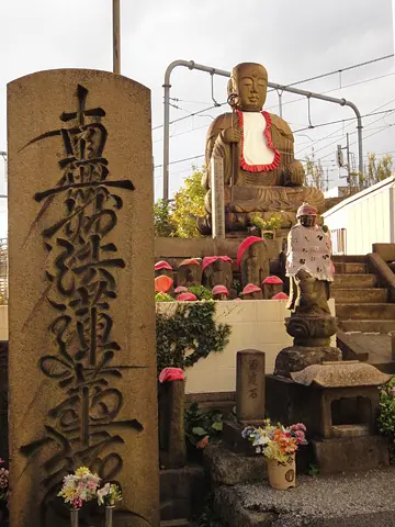 L’étape suivante de cette balade est le temple Jōkanji (浄閑寺). On dit de lui qu’y furent jetés, lors du grand séisme de l’ère Ansei survenu en 1855, les corps de plus de 500 prostituées du quartier des plaisirs de Shin-Yoshiwara (新吉原). D’où son surnom 投げ込み寺 , « temple où l’on jette [les corps] ». On dit également que leur nombre total y dépassait les 25 000 lorsque ledit quartier fut « fermé » en 1958.