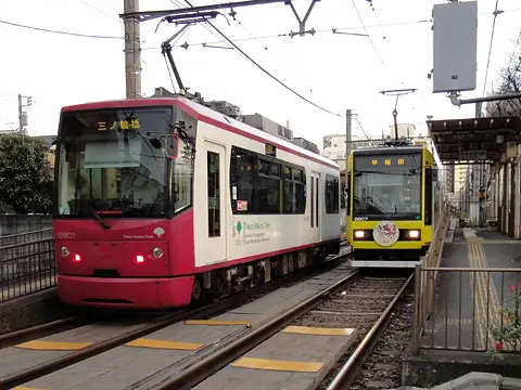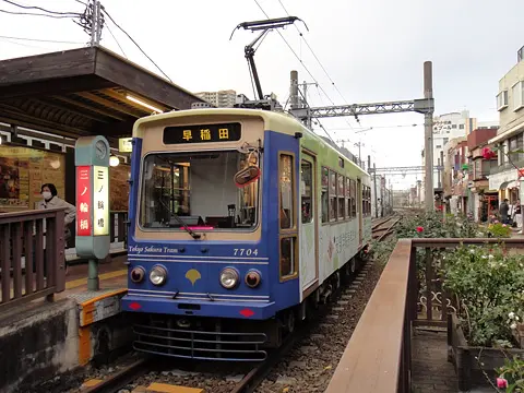 Le tramway au terminal Minowabashi, prêt à partir pour Waseda (早稲田)