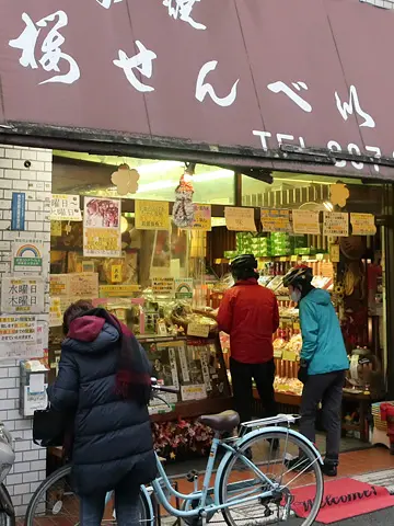 Dans les environs immédiats, le parcours passe devant un marchand de biscuits de riz, 桜せんべい . Faits à la main, sans additifs ni colorants, ces délicieux sembei n’ont rien à voir avec les produits industriels des supermarchés et kombini. Salīna et Sider n’ont pas pu y résister…