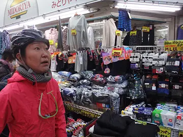 À la grande surprise de nos amis cyclistes, des bars y sont déjà ouverts en début d’après-midi. Et tout aussi surprenants sont les bas prix affichés un peu partout, autant pour la bouffe que pour les vêtements des magasins d’aubaines (激安店).
