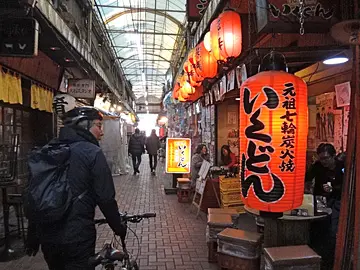 🚴 Après la visite du parc, la balade se poursuit vers l’ouest pour vers le nord, en passant par la bibliothèque centrale et le parc central de l’arrondissement de Kita, puis par la plus grande galerie marchande Jūjō Ginza, la plus grande de l’arrondissement, dont l’arcade a été construite en 1979.
