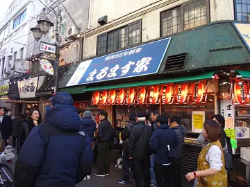 | Il y avait plusieurs usines dans l’arrondissement voisin, Kawaguchi, et il paraît que tout a commencé ici, quand on a ouvert ce commerce pour que les travailleurs de nuit qui revenaient des usines puissent y prendre un verre avant de rentrer à la maison. |