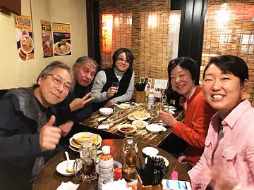 Avant de rentrer chacun chez soi, nos cyclistes terminent cette sortie dans un resto près de la gare, pour échanger leurs opinions sur ce trajet d’estampes né des circonstances exceptionnelles de la COVID-19. À la satisfaction générale et à l’unanimité, la décision est prise avec enthousiasme de poursuivre l’expérience en allant rouler aussi dans les autres arrondissements de Tōkyō, à la recherche des Cent Vues d’Edo du peintre Hiroshige !