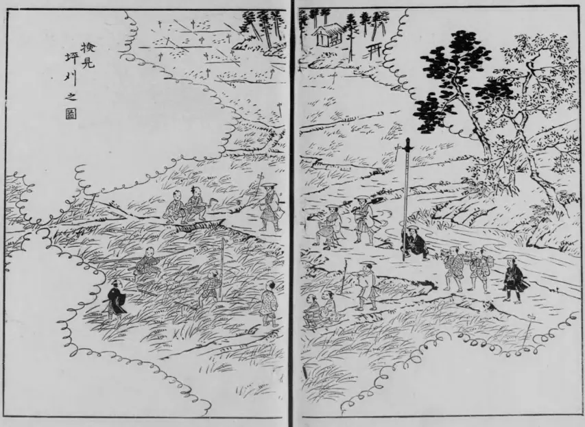 検地 Cadastrage à l’époque Edo. Source : 安藤博 編『徳川幕府県治要略』,赤城書店,大正4. 国立国会図書館デジタルコレクション https://dl.ndl.go.jp/pid/980845 (参照 2024-02-23)