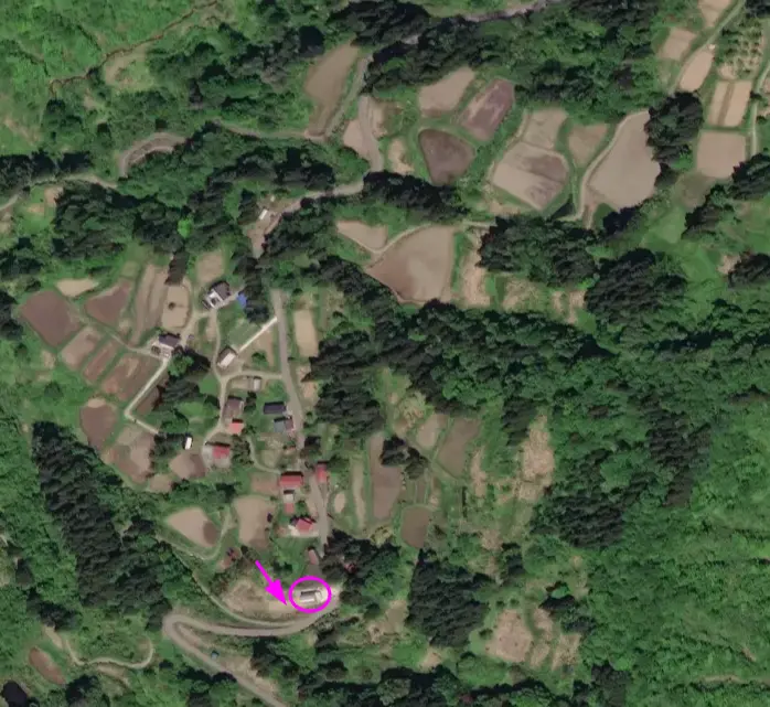 Pour se faire une meilleure idée de l’environnement dans lequel les opérations se déroulent, voici une vue aérienne des environs, extraite du site gpx.studio. J’ai encerclé le Rice Center et ai mis une flèche pointant vers l’arrière-cour où se trouve la pépinière. C’est dans les petites rizières environnantes en terrasses, de tailles et de formes diverses, que les plants de riz seront plus tard transportés depuis la pépinière.