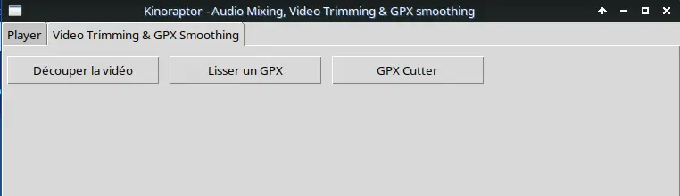 Ma bête restait encore sur sa faim, alors je lui ai ajouté un bouton dans l’onglet [Video Trimming & GPX Smoothing]. Ça va lui donner à manger deux choses de plus : (1) les doublons des fichiers GPX et (2) les sections inutiles qui correspondent aux bouts de vidéo coupés avec le bouton [Découper la vidéo] qui existe déjà. Voici à quoi ressemble maintenant cet onglet au design très sobre.