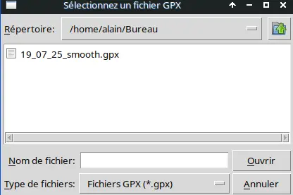 Cliquer sur ce bouton ouvre d’abord une fenêtre de sélection du fichier GPX.