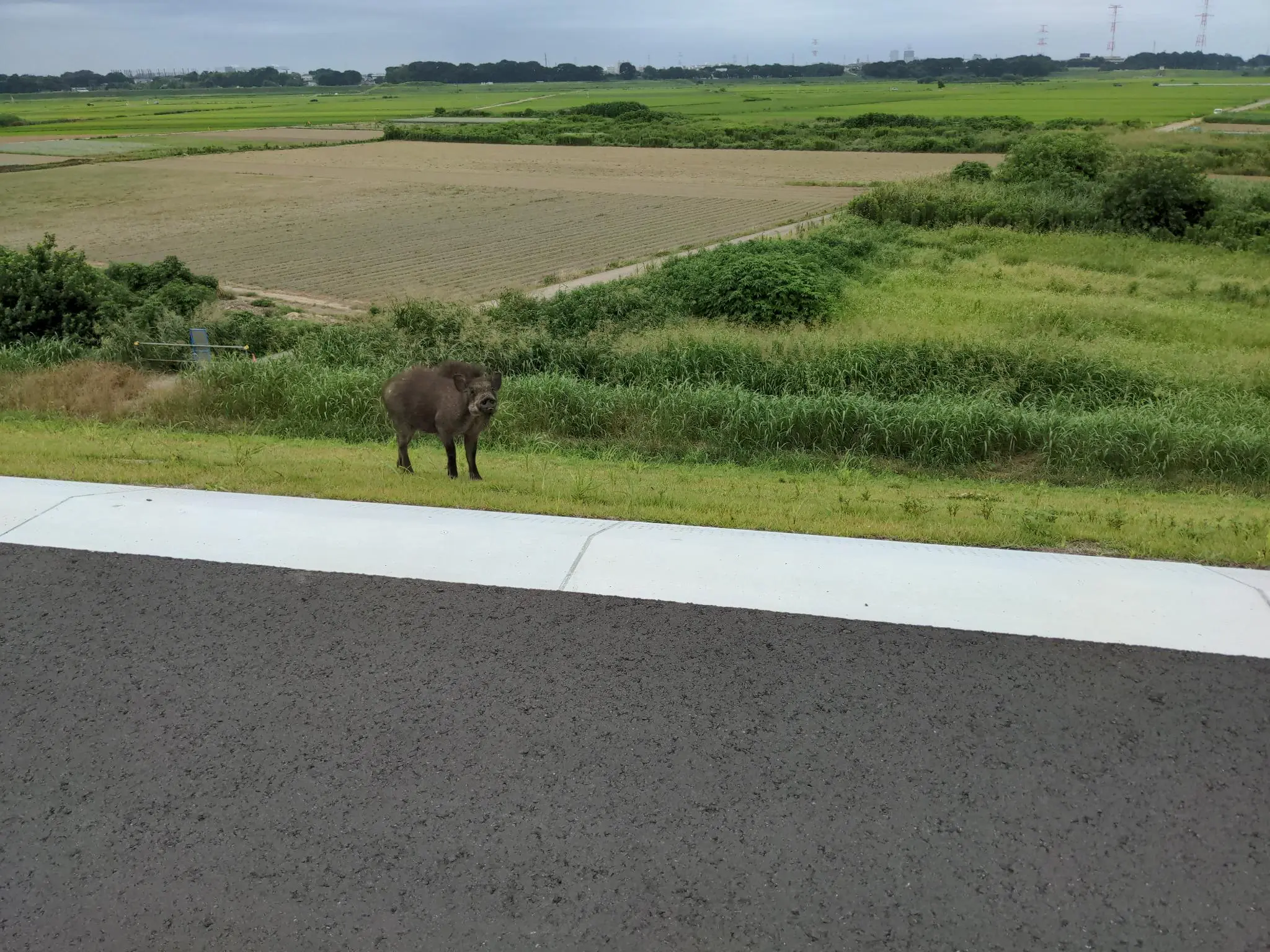 Et finalement ça c’est un sanglier, à quelques km de la maison. Il ne devait pas aimer le rouge, parce qu’il soufflait du museau et faisait signe de charger. Heureusement pour moi mon bipède m’entretient très mal et je fais des bruits de cliquetis d’un peu partout… ça l’a fait paniquer et il a pris la fuite comme s’il avait aperçu Obélix.
