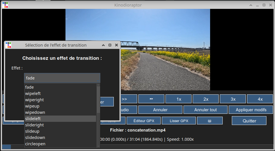 Du côté de Kinomap, j’ai ajouté pas mal de fonctions récemment au logiciel Kinodioraptor. Tellement qu’il s’appelle maintenant Kinoraptor, parce qu’il fait beaucoup plus que l’édition audio sur mes fichiers vidéo.