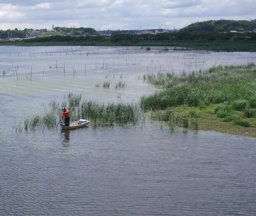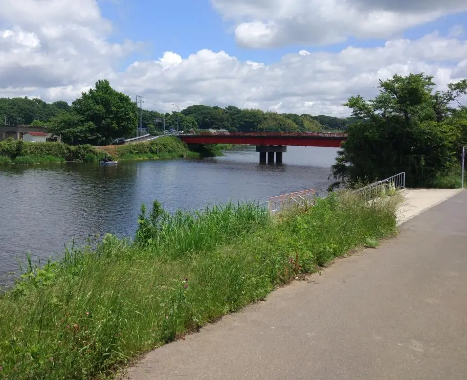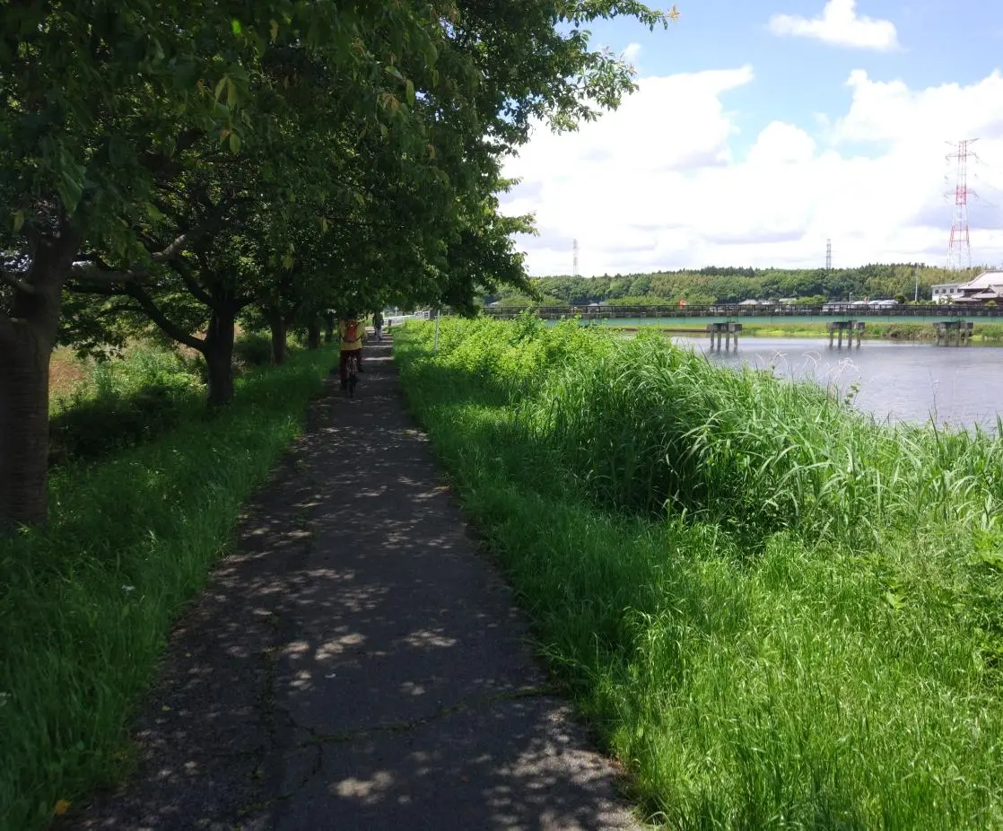 À 11 h 00, nous sommes arrivés au lac Inba-numa (印旛沼), où commence la piste cyclable de la rivière Hanamigawa (花見川), dont le cours descend vers le sud jusqu’à la baie de Tokyo.