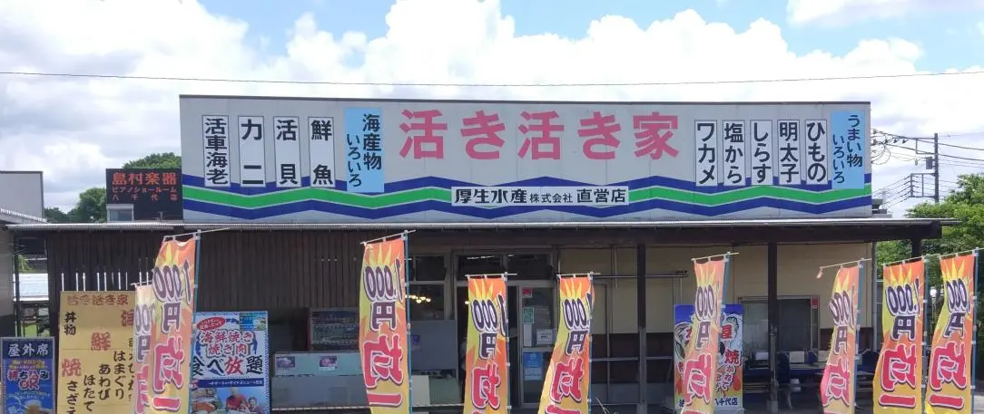 En quittant la piste pour aller acheter un lunch, nous sommes passés devant ce marchand de poisson dont les banderoles annonçaient un prix unique pour tous les produits, 1 000 yens. Iki-iki-ya (活き活き家), disait la devanture en gros caractères rouges. En français, ça donnerait quelque chose comme « Chez Iki-iki », à la nuance près qu’il est bien clair, en japonais, qu’il s’agit de poisson très-très frais, le caractère « 活 » signifiant « vivant » (en l’occurrence, du poisson, des coquillages et des crustacés livrés vivants au resto).