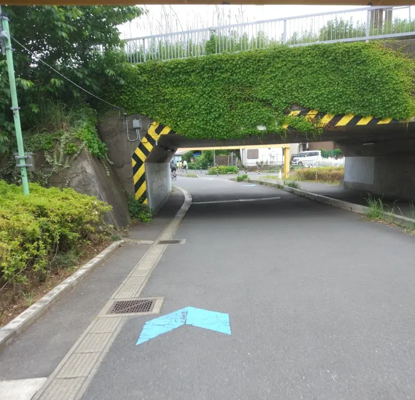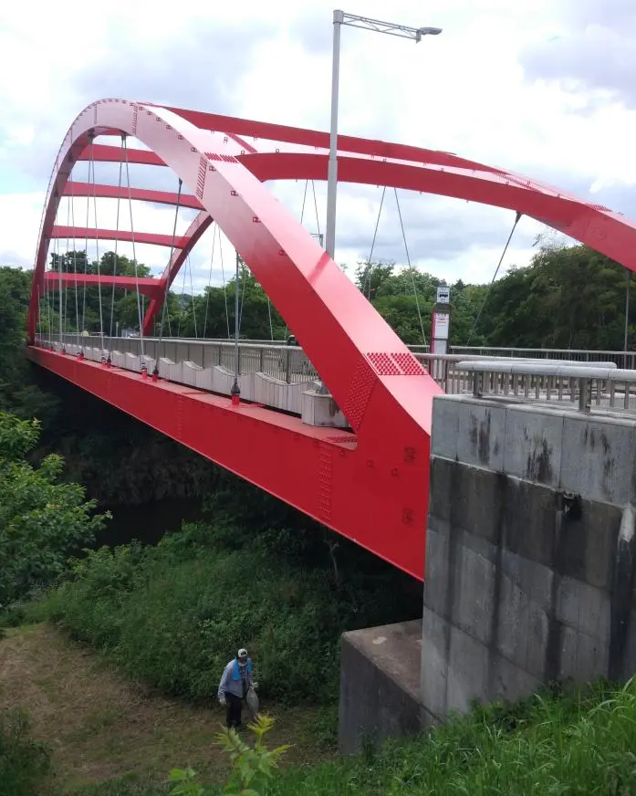 Jusqu’à la mer, la piste cyclable longe la rivière Hanamigawa (花見川), dont le nom signifie la rivière de contemplation des fleurs (de cerisier). Béni et moi préférons parfois contempler les ponts, et heureusement pour nous il y en avait beaucoup.