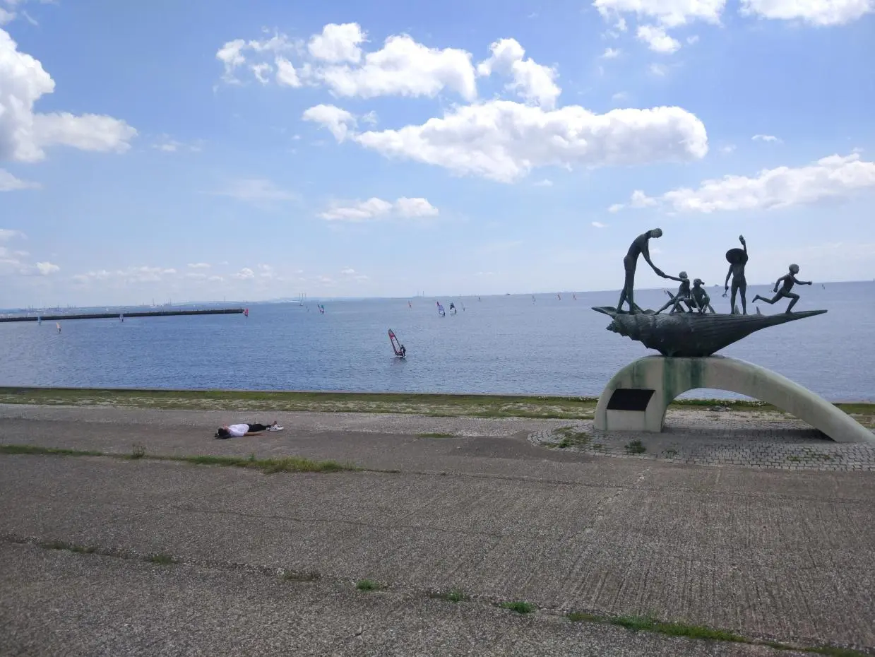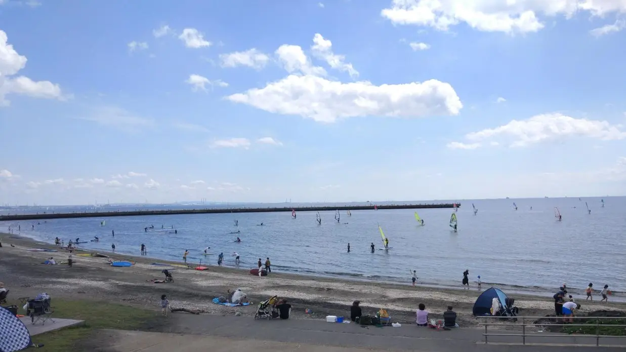 Il y a trois plages dans ce coin de la baie : Makuhari (幕張の浜), Kemigawa (検見川の浜) et Inage (いなげの浜). À vélo, on peut facilement se déplacer de l’une à l’autre en quelques dizaines de minutes, voire moins.