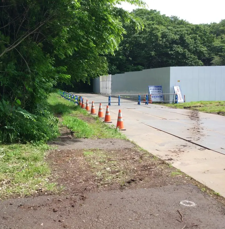 À 9 h 44, une barrière tubulaire rudimentaire nous a carrément barré la route qui longe la forêt Sōfuke (草深の森). Sur notre gauche, une chaîne qui semblait avoir fait la grasse matinée interdisait l’entrée dans le parc avant 6 h 3 0 du matin. Convaincus d’être dans notre bon droit (celui d’entrer), nous avons franchi cette chaîne tardive et regardé le plan de cette petite forêt pour voir s’il était possible de rejoindre la route plus loin.