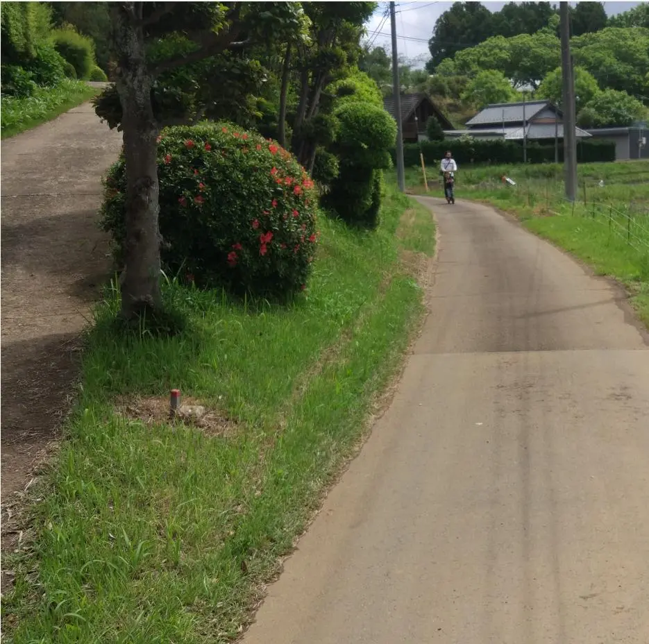 Arrivés par l’extrémité ouest, Béni-le-rouge et moi avons quitté la piste à son extrémité orientale sans nous faire prier, en y empruntant un petit chemin de terre qui coupait en ligne droite vers les collines de la ville de Kashiwa (柏市). Collines que nous avons d’ailleurs déjà traversées quelques fois, dont notamment à l’occasion de cet autre billet.