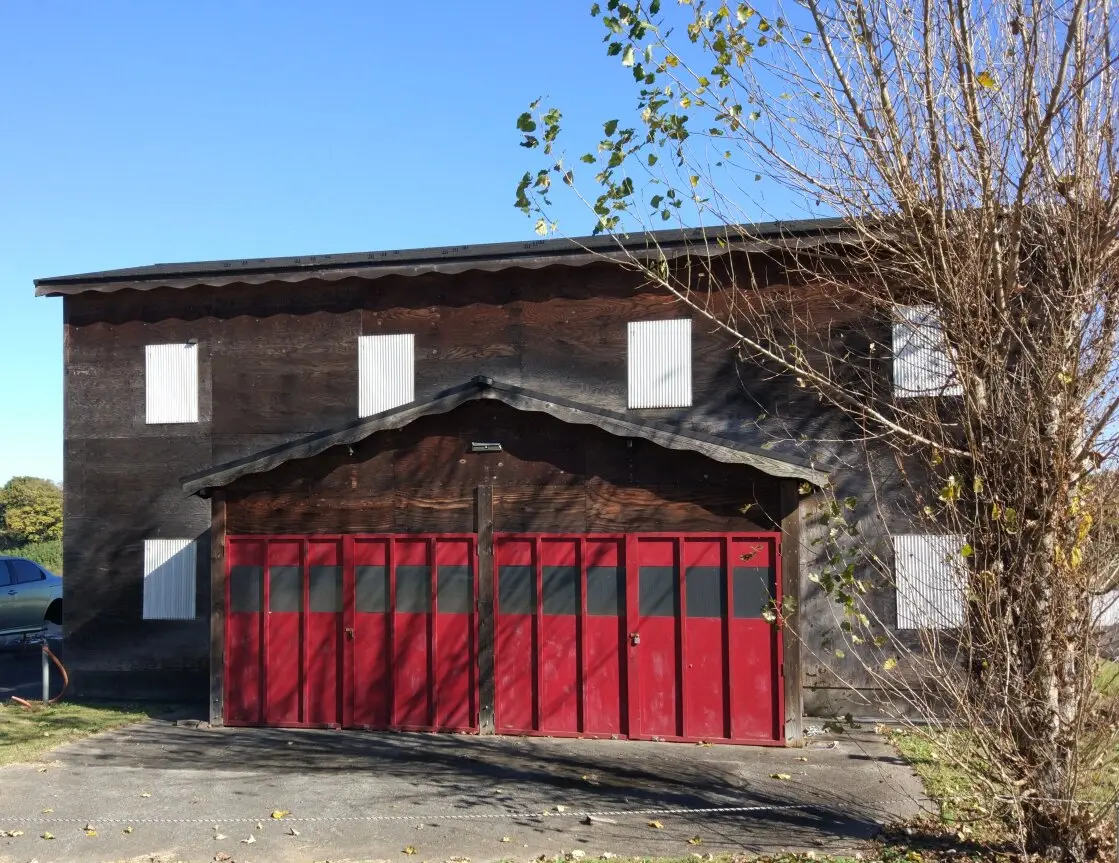 Cette stratégie tortueuse, à résultante rectiligne, nous a menés au bord de la rivière, exactement comme prévu, sauf que nous y sommes tombés sur un bâtiment qui, d’une part, était fermé, et qui, d’autre part, ne ressemblait à rien de ce que j’avais déjà vu le long de la rivière. Comme si ce bâtiment aux murs d’un brun foncé et aux grandes portes rouges cadenassées était atterri là pendant la nuit.