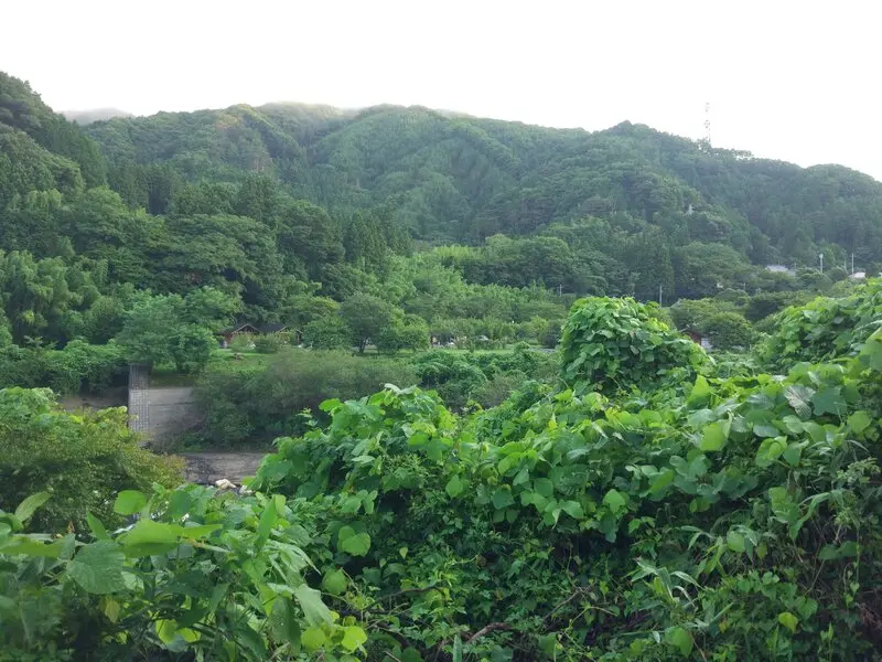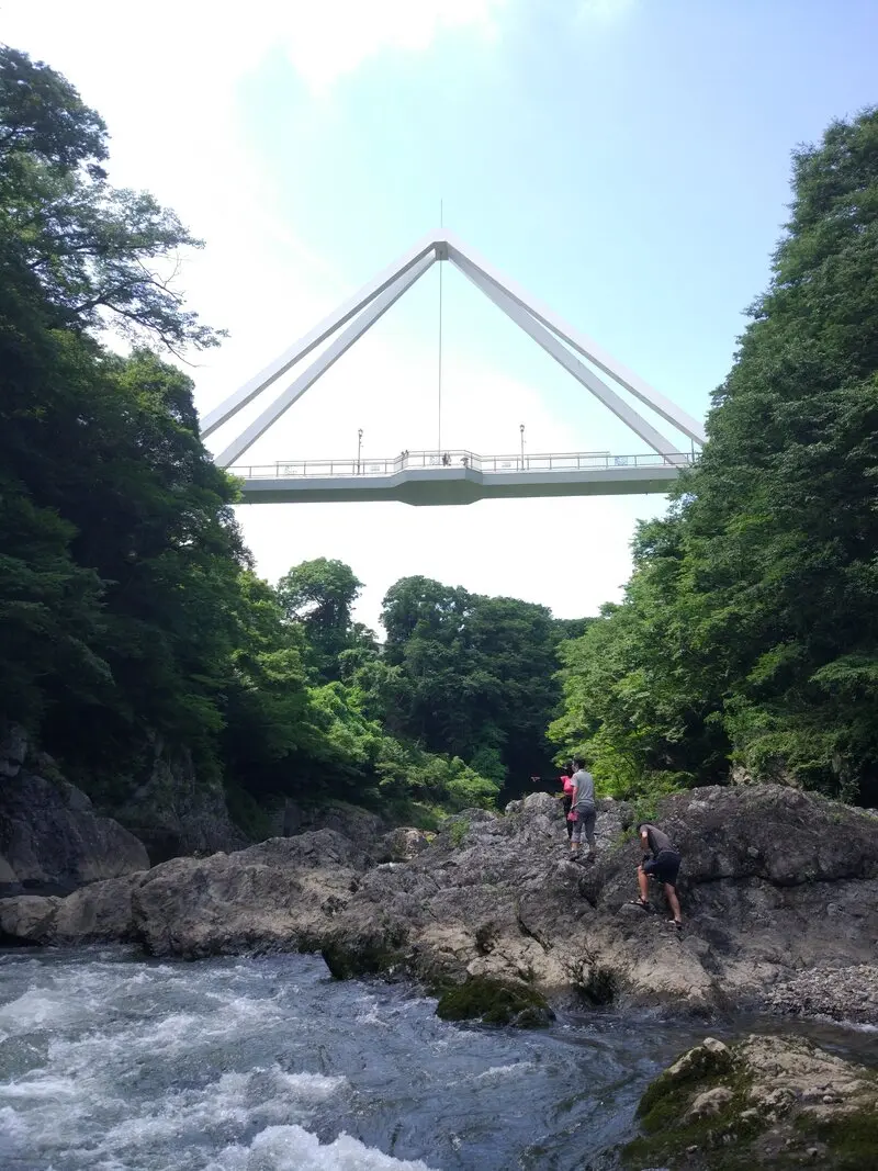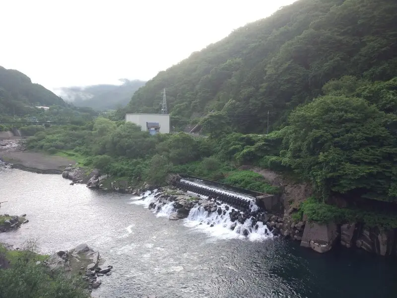 Le matin du 24, le petit-déjeuner était prévu pour 7 h. Levé tôt, je suis allé marcher sur la route qui longe la rivière, pour traverser le pont qui menait de l’autre côté. Il y avait une de ces petites centrales hydroélectriques typiques du Japon, où l’eau est pompée petit à petit jusqu’en haut de la montagne, puis libérée jusqu’à la centrale pour y faire tourner les turbines.