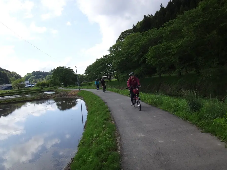 De là nous pourrions, comme la journée précédente, longer la voie ferrée de la ligne Ban’etsutō, cette fois-ci du bourg d’Ononii-machi à Miharu (三春), mais le trajet préparé par Geo Pottering passe plutôt en ligne droite, pour faire plus court, jusqu’au lac Sakura ( さくら湖 ).