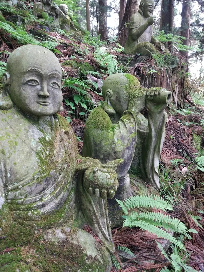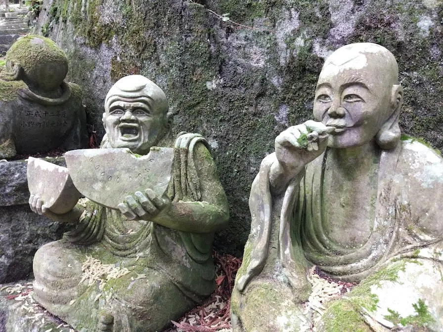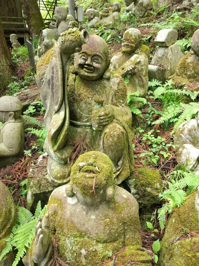 Le site Web du bourg d’Ono-machi nous apprend que dans la section qui commence à côté du shōrō (鐘楼, la tour de la cloche) se trouvent les arhats de Shōwa, dont le nombre, sans cesse croissant depuis 1985, y dépasse aujourd’hui les 500 statues.