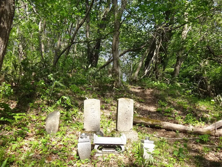 La pierre de gauche est dédiée à seize guerriers, et celle de droite à six, tous décédés lors de la guerre de Boshin, qui opposait les forces de la Restauration de Meiji à celles du shogounat d’Edo. Ce sont les habitants du hameau du coin, dit-on, qui sont venus ramasser et enterrer les cadavres de jeunes guerriers après la guerre.