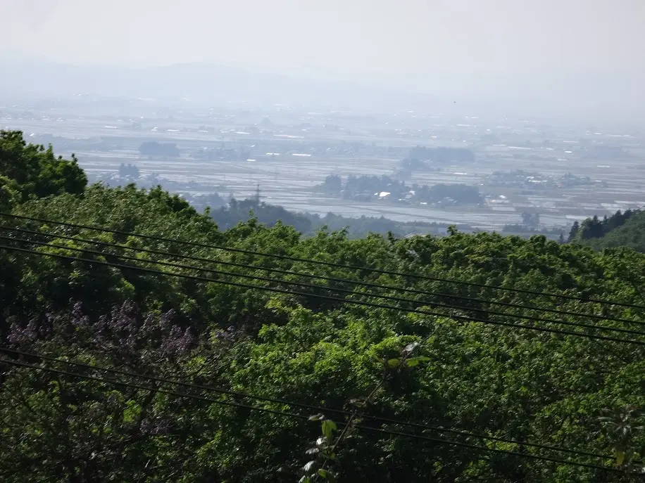 Nous traversons le petit hameau Koshida (小志田), puis nous éloignons de la berge pour passer à travers la colline qui donne son nom à un autre bourg du coin (ou l’inverse) : Kaneyama (金山). Nous sommes près de la limite administrative qui sépare les villes de Kōriyama et d’Aizuwakamatsu, mais avant de la franchir, il faut se taper deux petits sommets.